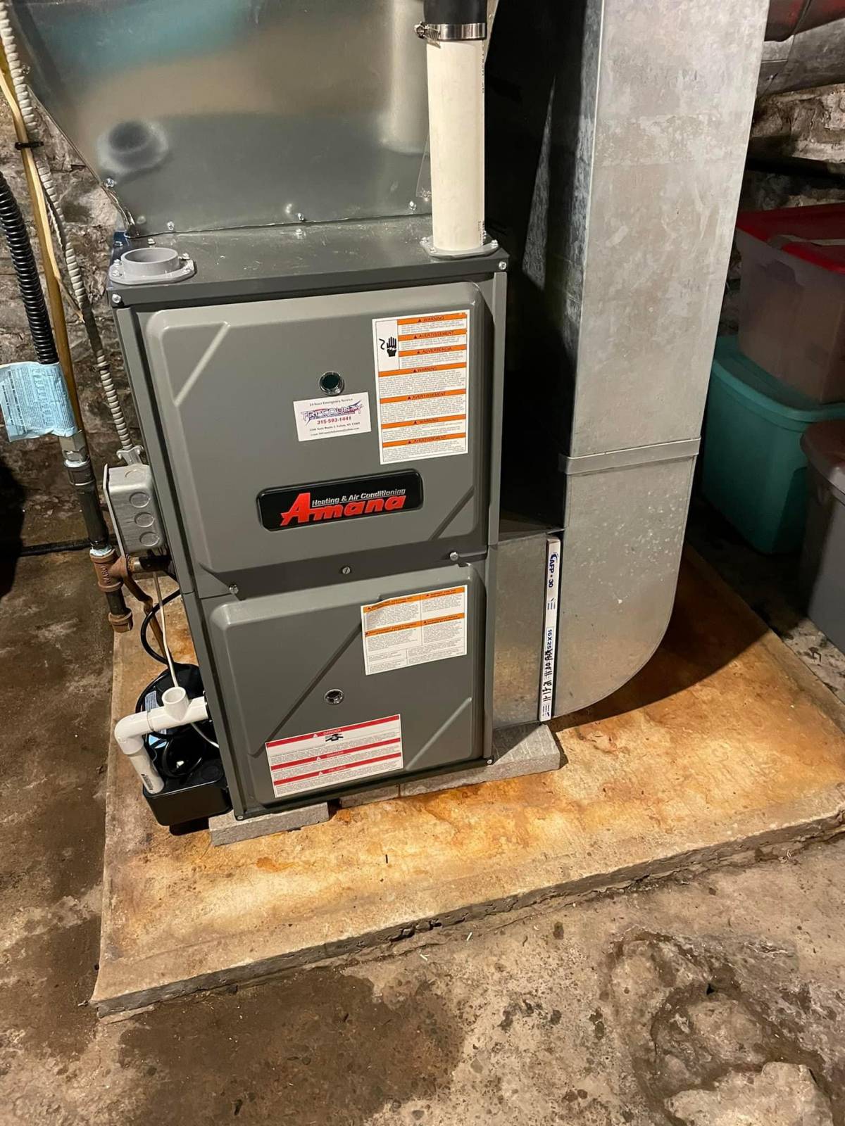 Call (315) 593-1441 and leave a message for our on-call technician.